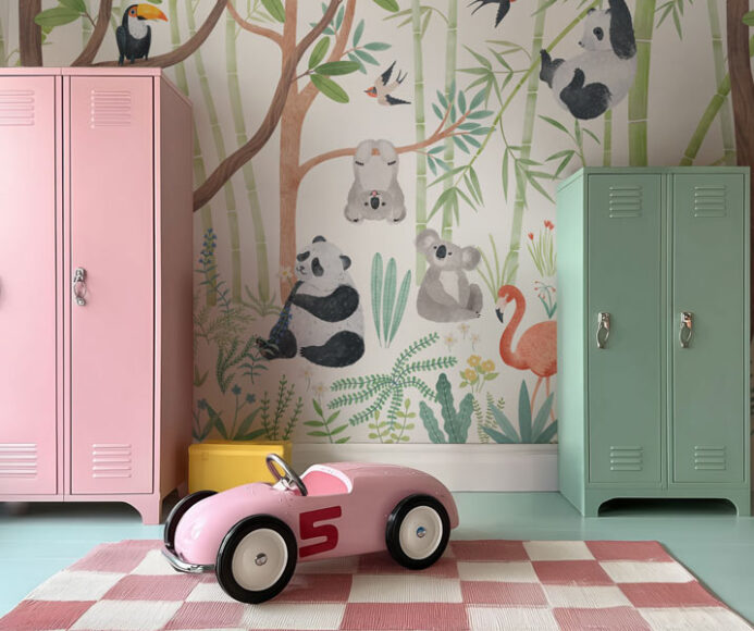 Yes! Most of our panoramic wallpaper designs can be personalised: you can change the colours, rearrange the elements, add a name, or simply adapt the design to the exact size of your wall.
