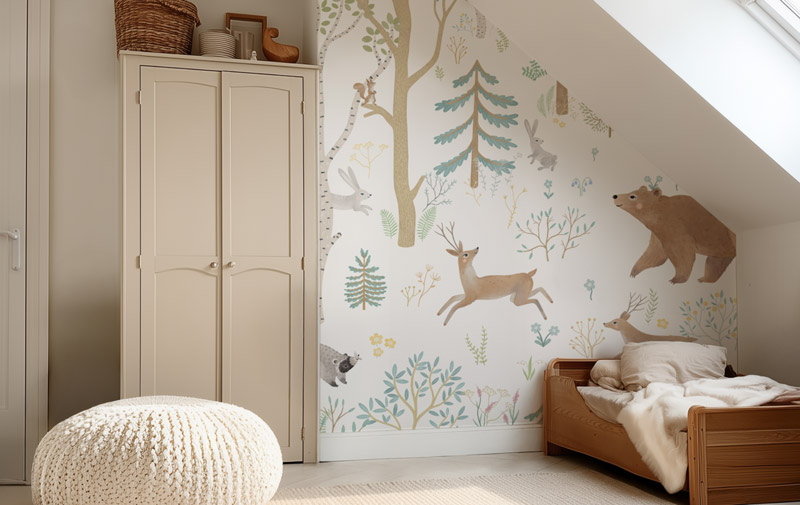 Because every detail matters when creating a unique space for your child, our designers have created designs where you can seamlessly integrate your child’s name into the wallpaper design. This can be done across all our collections. Whether through elegant typography or playful integration within illustrations, we ensure the name blends beautifully and creatively to make their room even more special and personal.