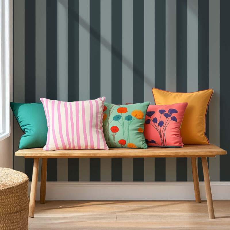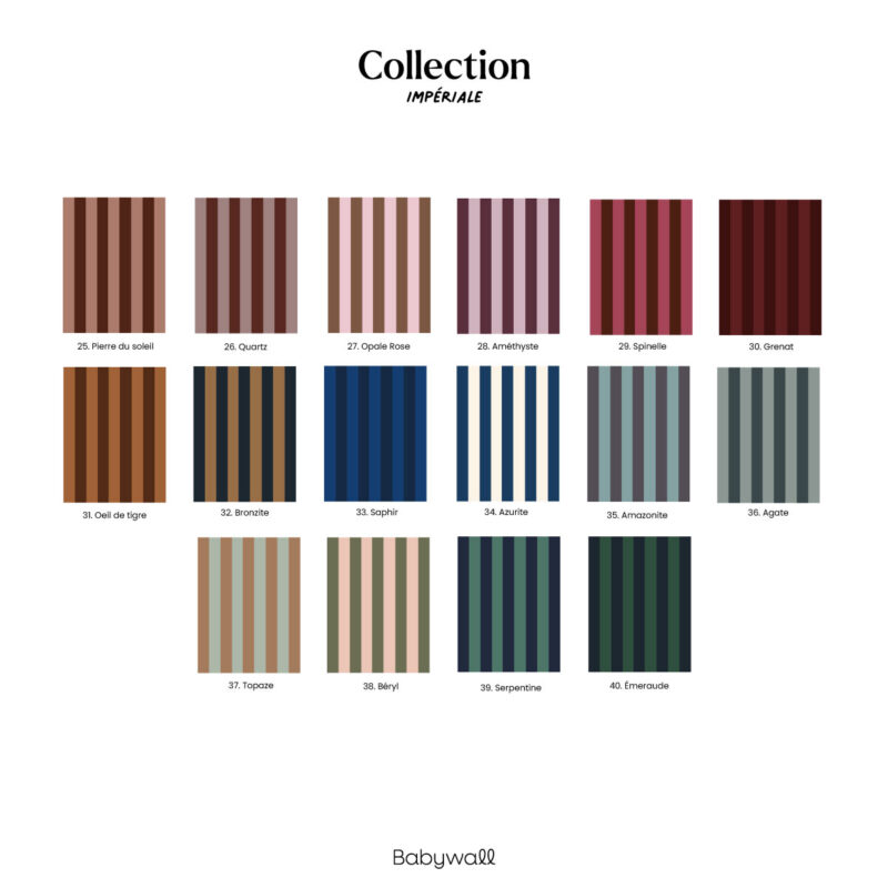 With its vertical stripes in subtle shades of grayish green and blue, the Agate wallpaper creates a soft, modern atmosphere. This pairing of mineral tones adds a soothing touch, perfect for complementing any decor style. Part of the Impériale collection, this design is available in two versions: wide stripes (9 cm) or narrow stripes (5 cm). A delicate wallpaper that works just as well in a child’s bedroom as in a relaxation area.