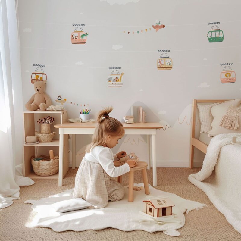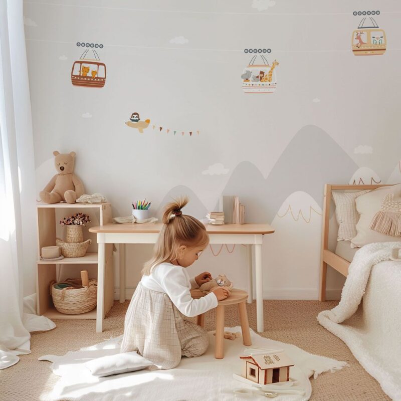 Made in France in a production facility in Savoie, and printed in Nice in our creative studio, our innovative wallpaper is made from a blend of cellulose and polyester fibres and is completely PVC-free. It is printed using LATEX inks, ensuring an environmentally friendly production process. These water-based, solvent-free inks are made from plant-based latex. They are odourless and contain no harmful substances for children’s health and do not generate air pollution. All of this while guaranteeing excellent print quality.