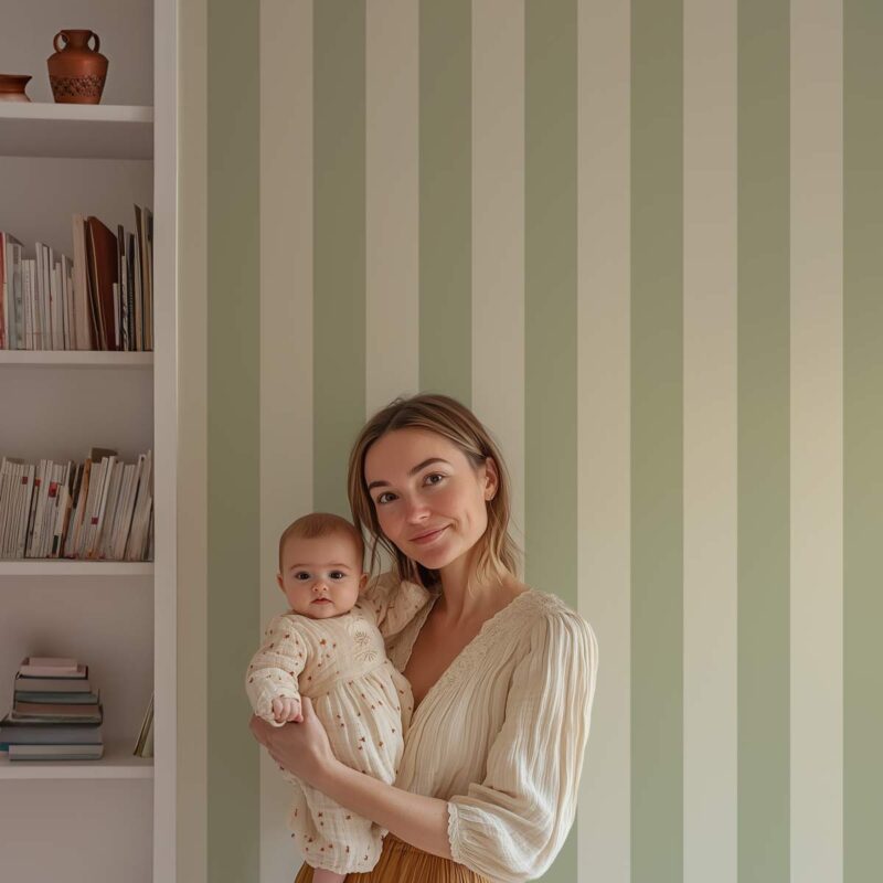 With its vertical stripes in shades of pastel green (one slightly more powdery), the Anis wallpaper creates a soft and luminous atmosphere. A subtle harmony that captures the light while adding a fresh touch to the space. This design is part of the Tons sur Tons collection and comes in two versions: wide stripes (9 cm) or narrow stripes (5 cm). An ideal wallpaper for a child’s bedroom, but one that will also fit perfectly in a living room or reading nook. Anis adds a subtle touch of color while leaving room for wall customization. A refined choice for those seeking a soothing and timeless design.