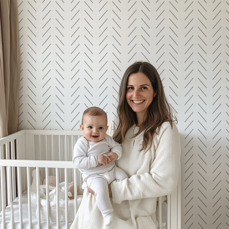Black-and-white herringbone wallpaper