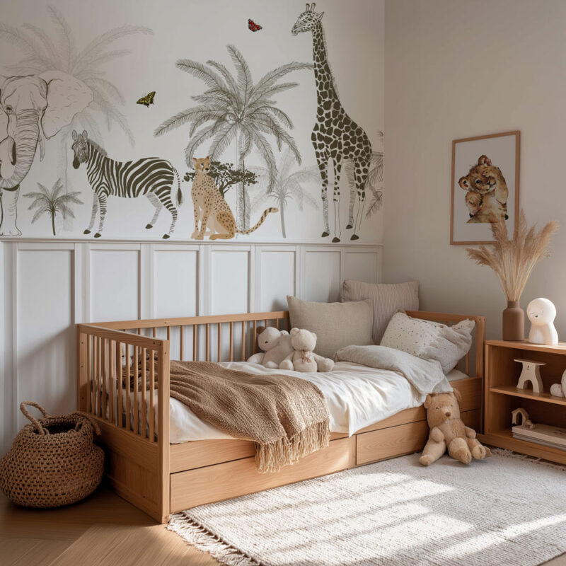 Made in France in a production facility in Savoie, and printed in Nice in our creative studio, our innovative wallpaper is made from a blend of cellulose and polyester fibres and is completely PVC-free. It is printed using LATEX inks, ensuring an environmentally friendly production process. These water-based, solvent-free inks are made from plant-based latex. They are odourless and contain no harmful substances for children’s health and do not generate air pollution. All of this while guaranteeing excellent print quality.