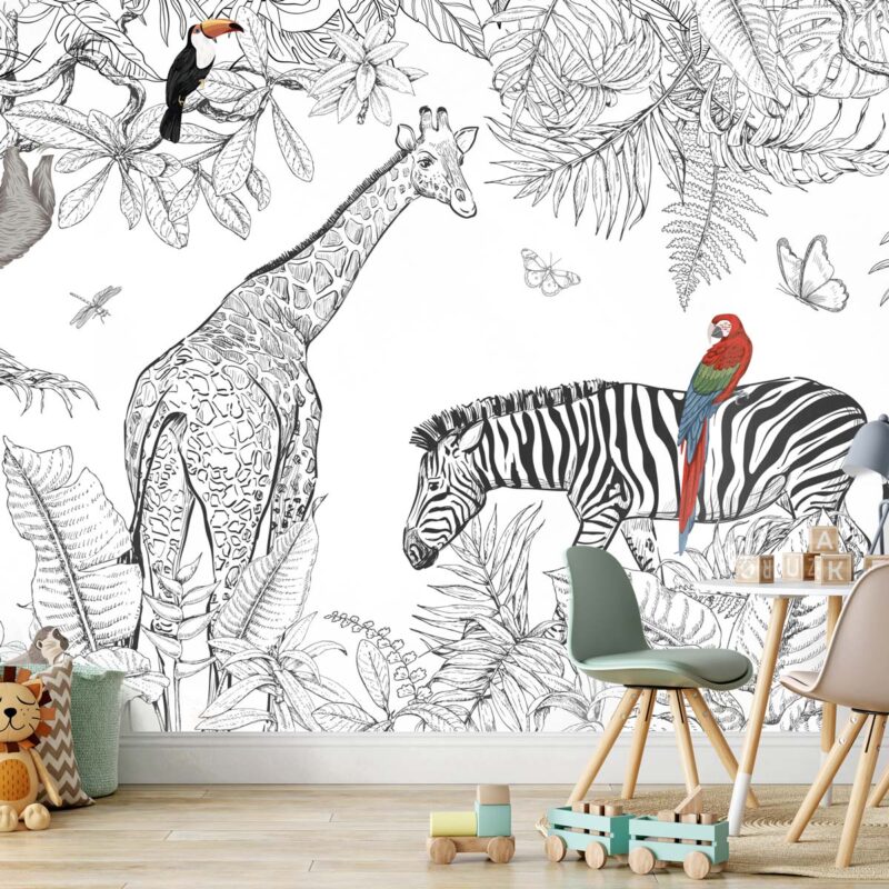 Black-and-white wallpaper for a child’s room