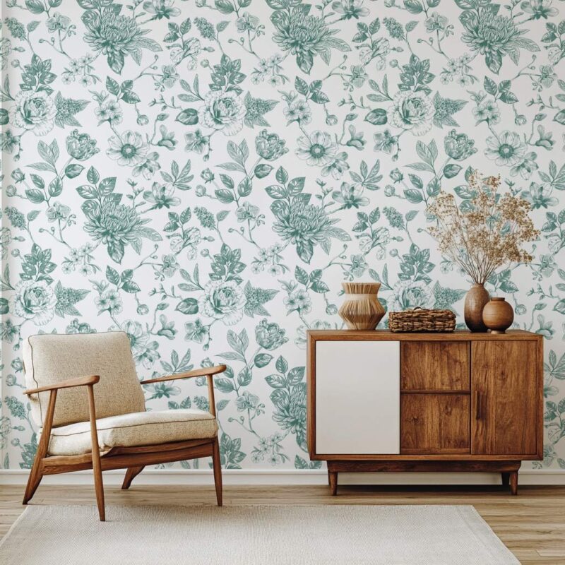 Ideal for an adult bedroom, an elegant living room, a cozy library, or even an inspiring office, this floral wallpaper offers a true invitation to contemplation. Its detailed and subtle pattern adorns your walls with delicacy, bringing a chic and soothing touch to your decor.