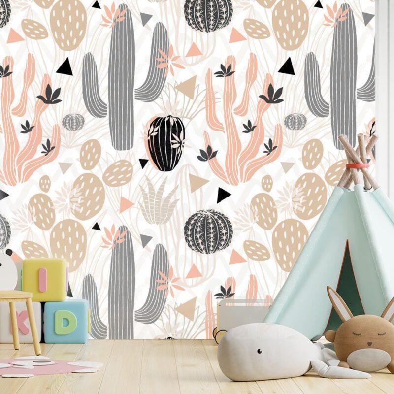 Cactus-patterned wallpaper for a child’s room