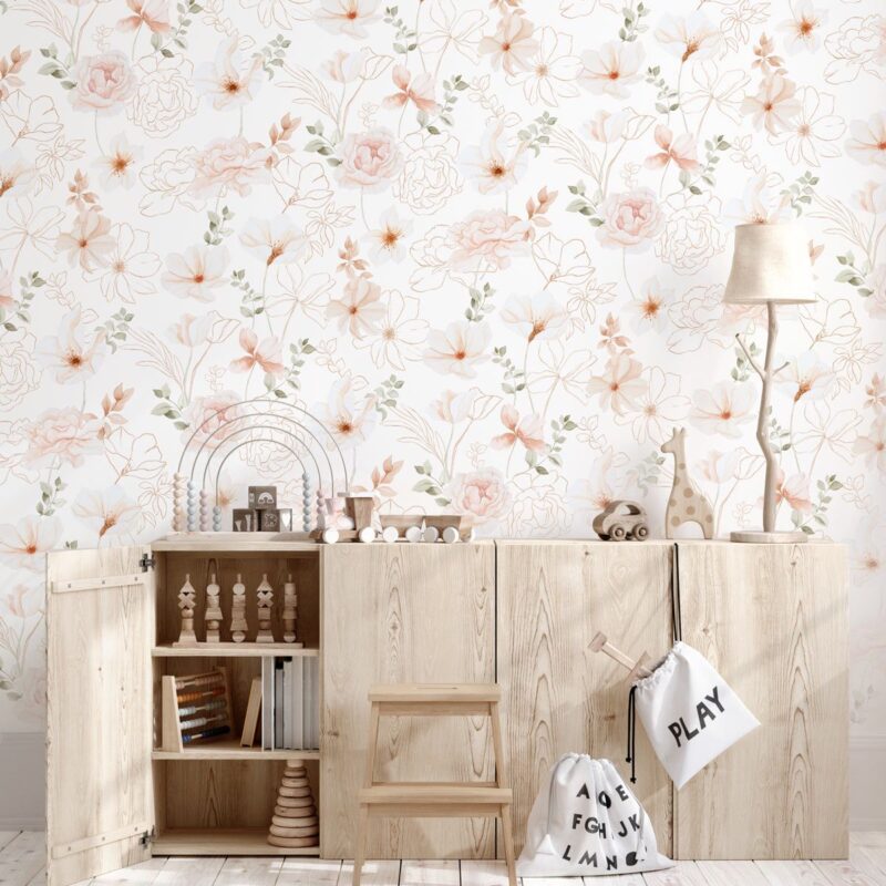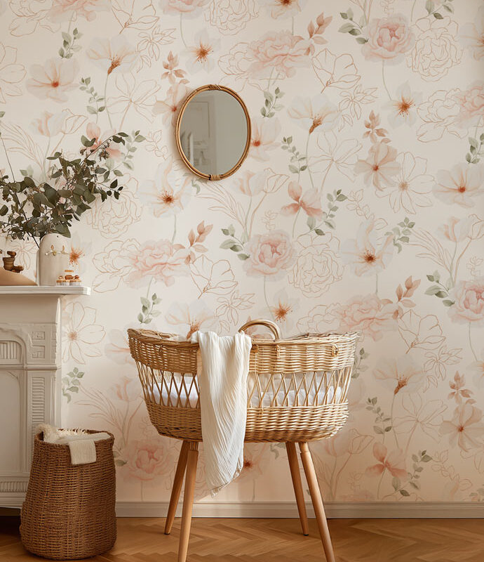 Children’s rose-patterned wallpaper