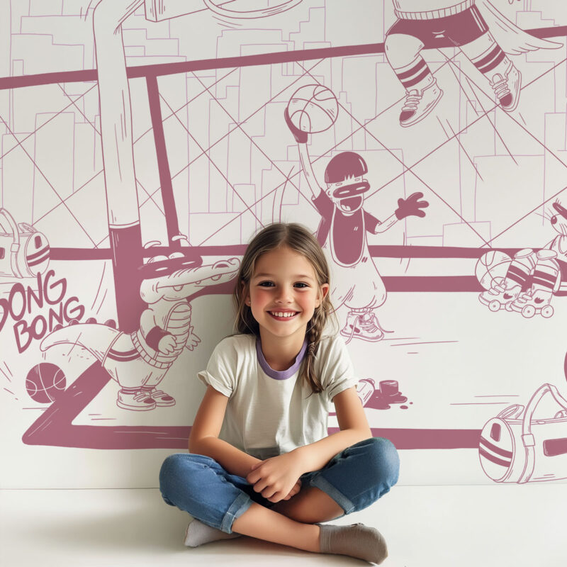 Immerse yourself in the dynamic world of basketball with the Dunk & Jump panoramic wallpaper! Perfect for a child’s bedroom—whether it’s a girl’s or a boy’s room—this original design features characters in full action on an urban basketball court. Its graphic and immersive design adds a sporty and modern touch to the room, ideal for sparking the imagination and a passion for the game.