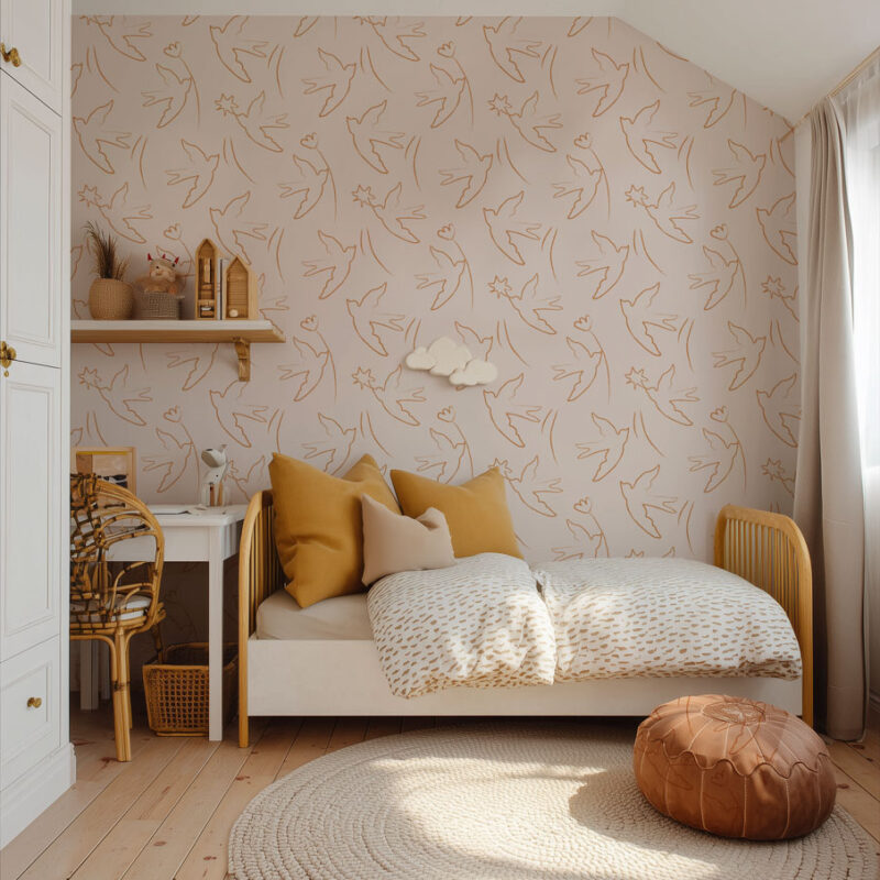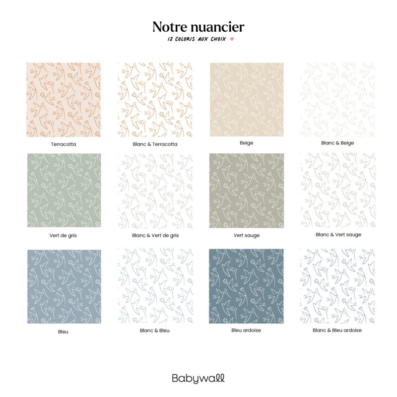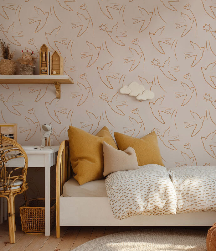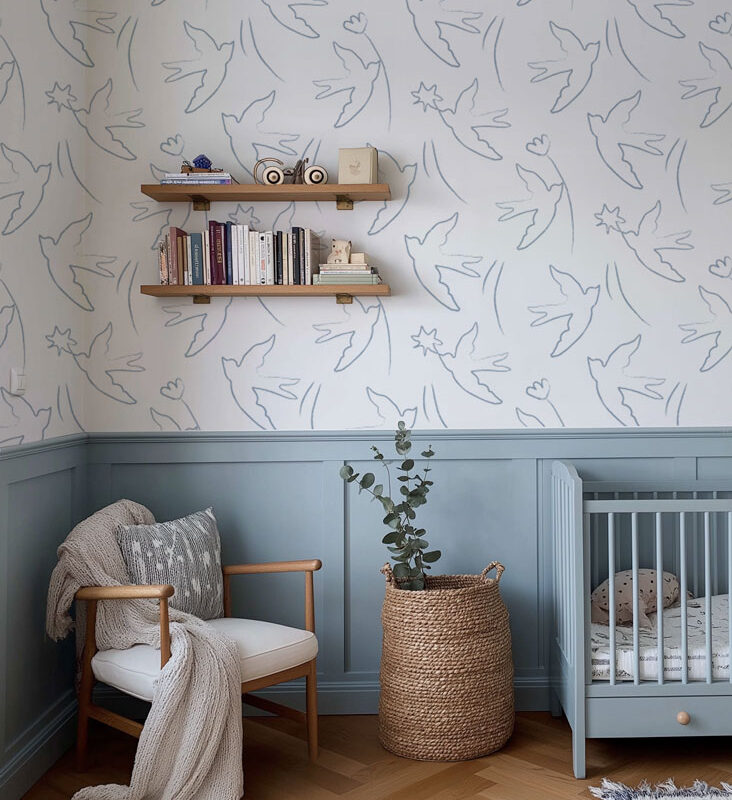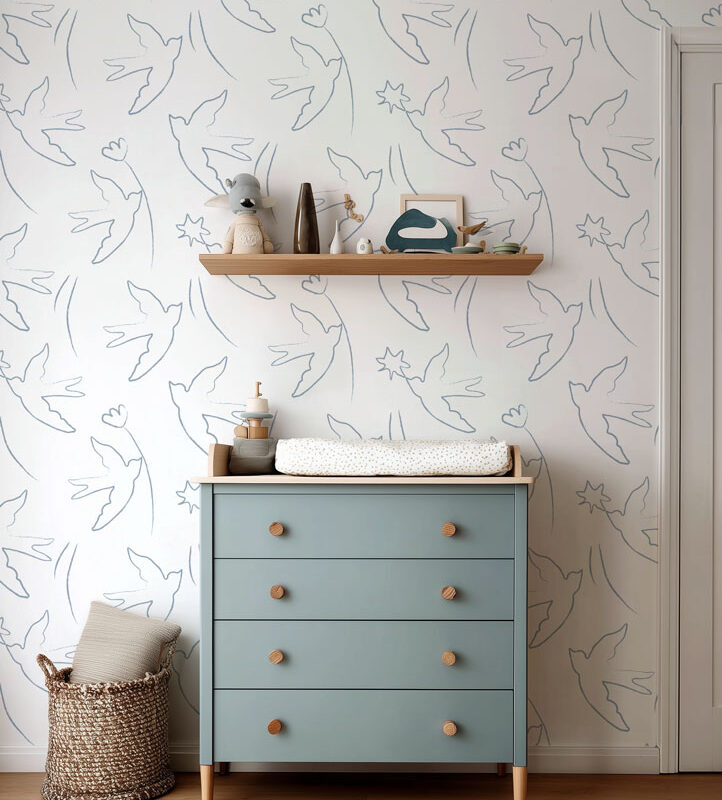 Give your child’s room an artistic and decidedly trendy touch with this exclusive Babywall wallpaper, designed by an artist. Each bird, hand-drawn in outline, is the result of a unique creative process. Its minimalist design, both modern and timeless, gently enhances the walls. The fine, clean lines create a soothing atmosphere, perfect for rest and exploration, without ever overwhelming the space. Designed as a true decorative element, this wallpaper fits just as well in a nursery as it does in a child’s bedroom. Its unisex style is perfect for both girls and boys, creating a harmonious and poetic world.