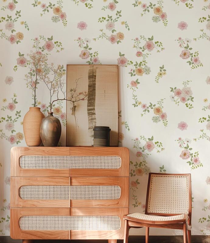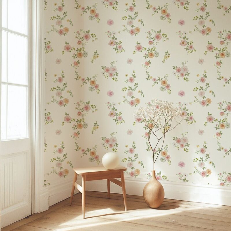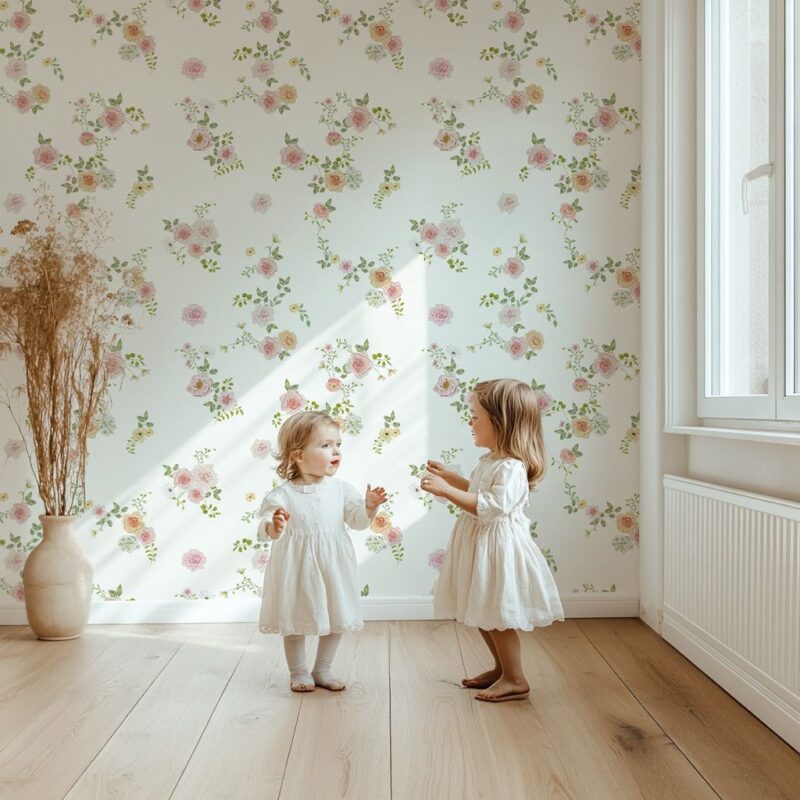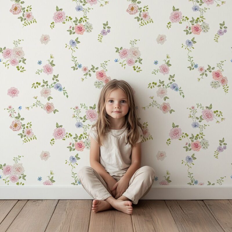 Perfect for creating a soft and soothing ambiance, this baby wallpaper is ideal for a girl’s room, a child’s bedroom, or any other space you wish to embellish with a delicate floral touch.