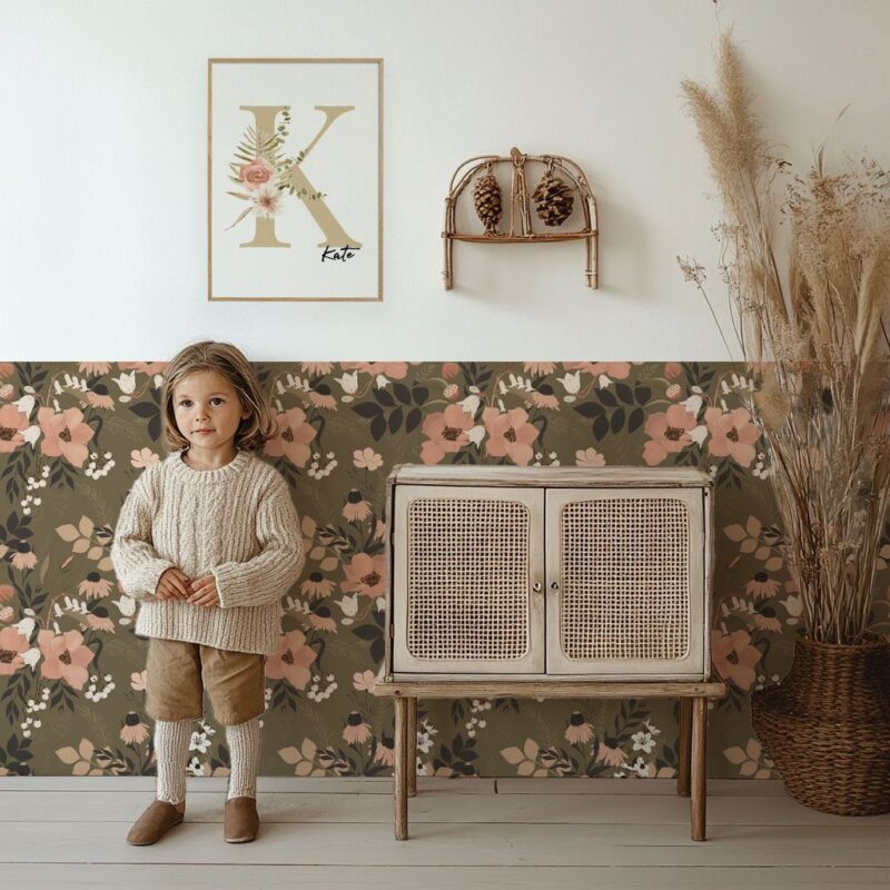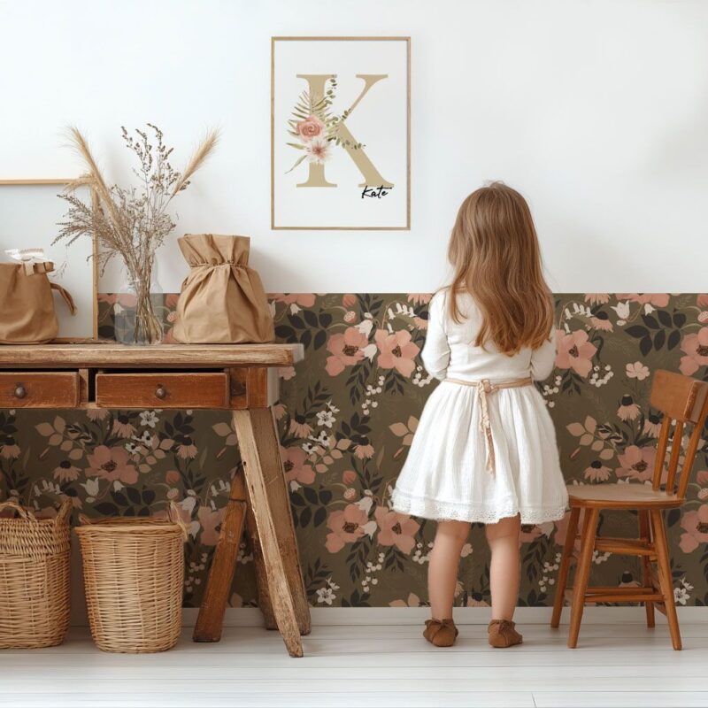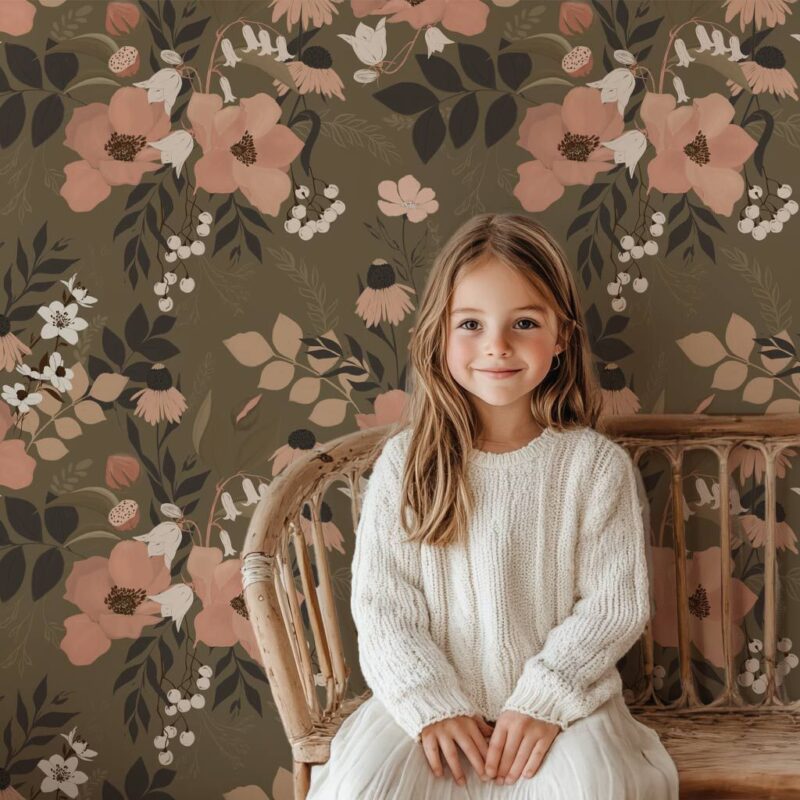 Perfect for a child’s room, a girl’s bedroom, a master bedroom, or even a living room, this wallpaper complements various decorative styles, whether bohemian, classic, or contemporary. Its soft, natural color palette makes it an ideal choice for a space designed for relaxation and serenity.