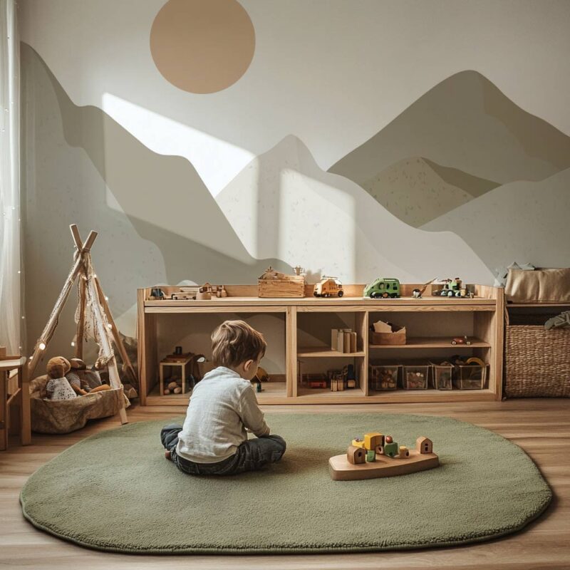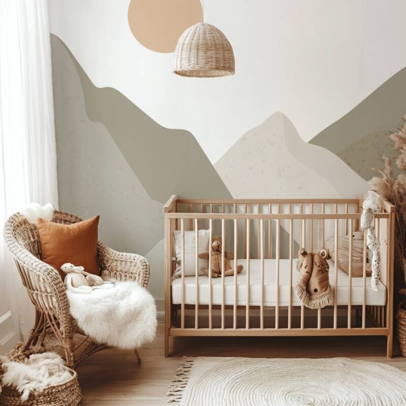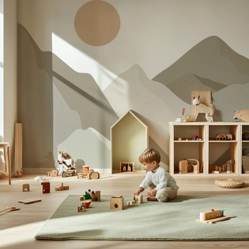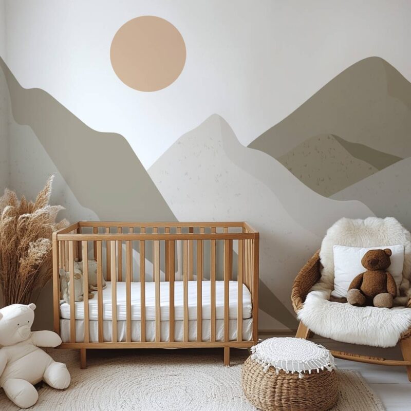 Immerse your child in a soothing setting with this mountain-themed wallpaper, inspired by wild landscapes. Featuring mountains in shades of khaki green and gray, this minimalist design creates a gentle, natural atmosphere, perfect for a child’s bedroom. Made in France and custom-cut to fit your wall, this children’s wallpaper blends seamlessly into modern, minimalist, or nature-inspired decor. Its subtle green gradient adds a warm, timeless touch that sparks the imagination and encourages daydreaming. A unique design that invites adventure while creating a cocoon of serenity in the heart of nature! Discover our entire collection of green wallpaper.