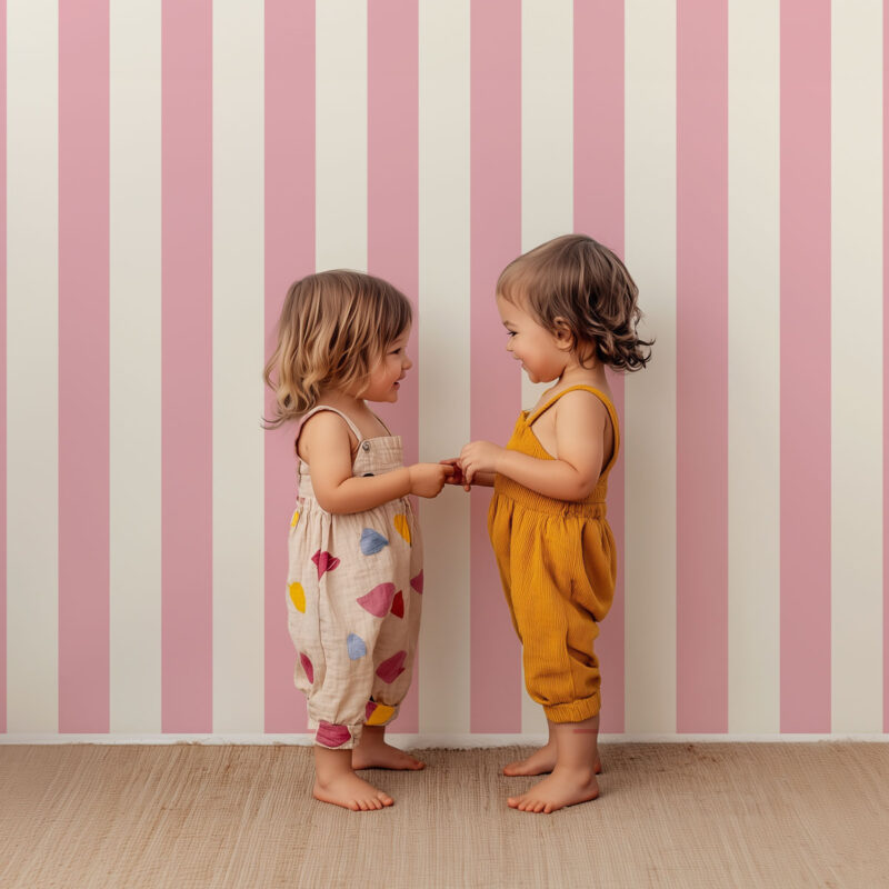 A soft pink and powdery beige duo sets the tone: the Rose Clair wallpaper adds a sweet, delicate touch to your home. With its vertical stripes, it creates a sense of height while maintaining a light, airy feel. Part of our Classic collection, it comes in wide (9 cm) or narrow (5 cm) stripes to suit your decorating style. This wallpaper works just as well in a nursery, child’s room, or teen’s room as it does in a living room, office, or entryway. Its charm lies in its simplicity: an easy-to-incorporate pattern that adds a gentle splash of color.