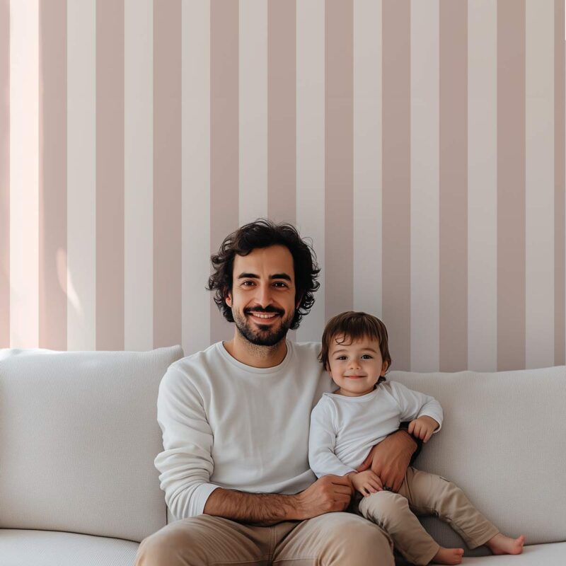 Immerse your home in a soft, sophisticated atmosphere with this vertical striped wallpaper in a subtle palette of powder pink and rosy beige. Available in two finishes—wide stripes (9 cm) or narrow stripes (5 cm)—this wallpaper creates a sense of height that visually expands the space. Its muted tones, halfway between soft pink and subtle beige, make this wallpaper an ideal choice for a modern, bright space. Its understated and timeless style suits both minimalist settings and warmer, cozier decor. Part of the Poudrée collection, this design was created to add an elegant touch to every room in the house, from the living room to the children’s bedroom.