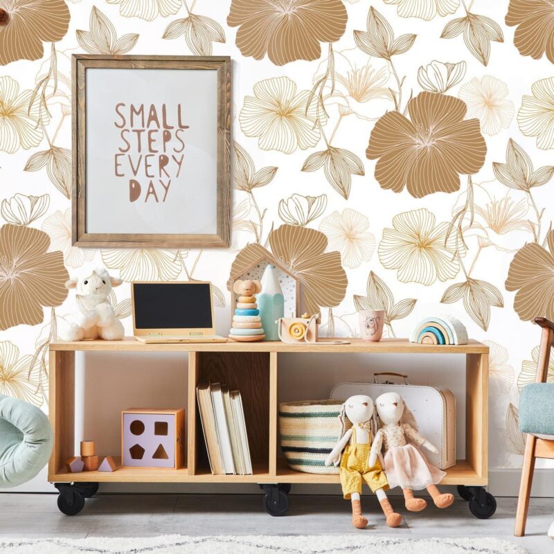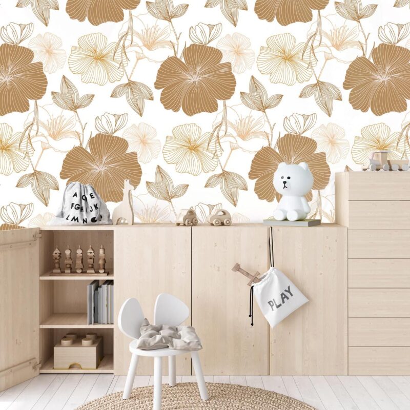Natural flower wallpaper for a girl’s bedroom