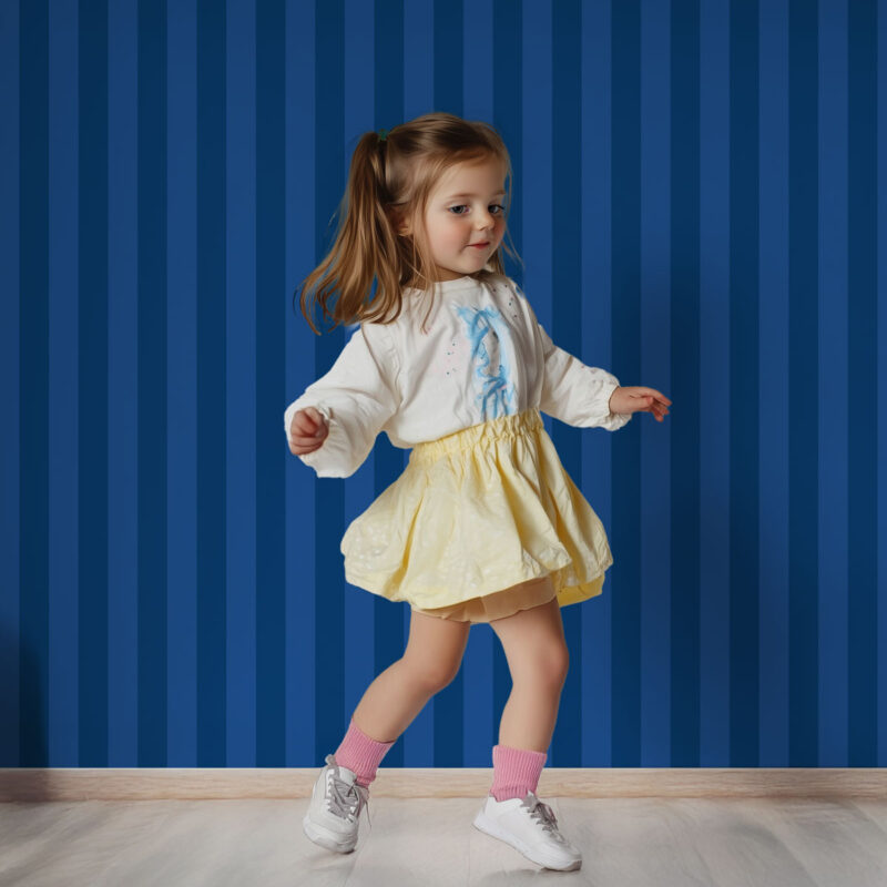 The Marin wallpaper makes a bold statement with its vertical stripes in shades of navy blue, one of which is slightly lighter. This subtle contrast creates a textured and elegant look, perfect for adding structure to a room with style while accentuating the sense of height. Part of our Tones on Tones collection, this design embodies a style that is both deep and on-trend. Its refined design creates a striking wall presence while maintaining a certain visual softness. This wallpaper is available in two versions: wide stripes (9 cm) or narrow stripes (5 cm).