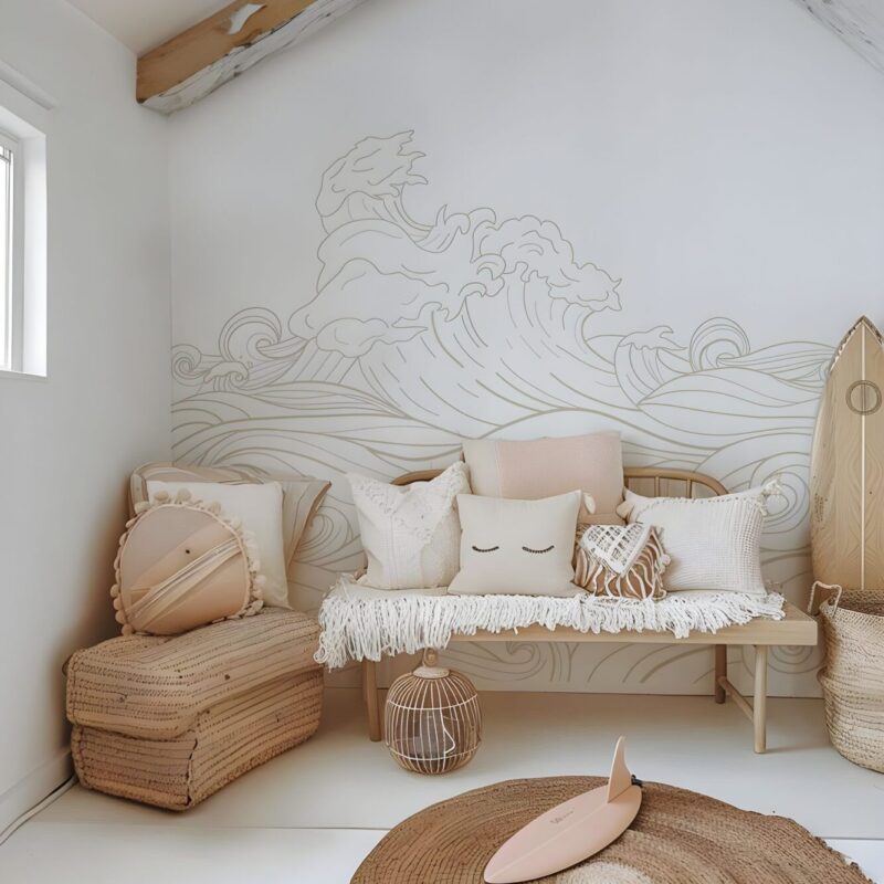 Made in France in a production facility in Savoie, and printed in Nice in our creative studio, our innovative wallpaper is made from a blend of cellulose and polyester fibres and is completely PVC-free. It is printed using LATEX inks, ensuring an environmentally friendly production process. These water-based, solvent-free inks are made from plant-based latex. They are odourless and contain no harmful substances for children’s health and do not generate air pollution. All of this while guaranteeing excellent print quality.