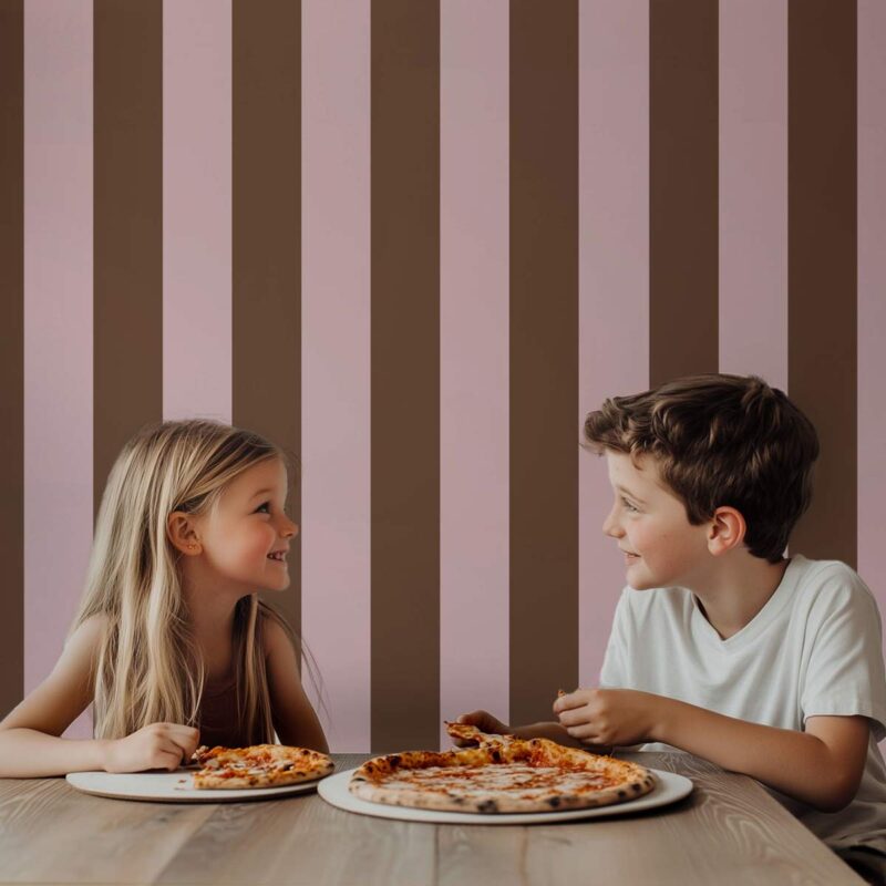 With its vertical stripes in a subtle blend of brown and pale pink, the Opale Rose wallpaper embodies elegance. A play of contrasts that defines the space while adding warmth. Part of our Imperial collection, it is available in two widths: wide stripes (9 cm) or narrow stripes (5 cm). This unique wallpaper is perfect for a living room, creating an atmosphere that is both soft and contemporary.
