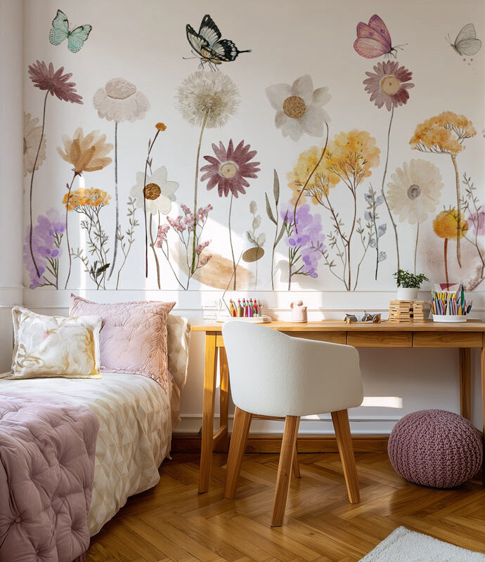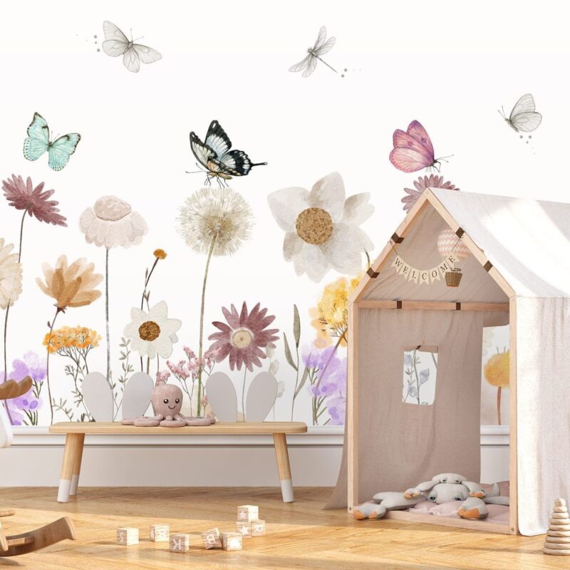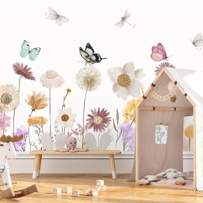 Panoramic floral wallpaper for children