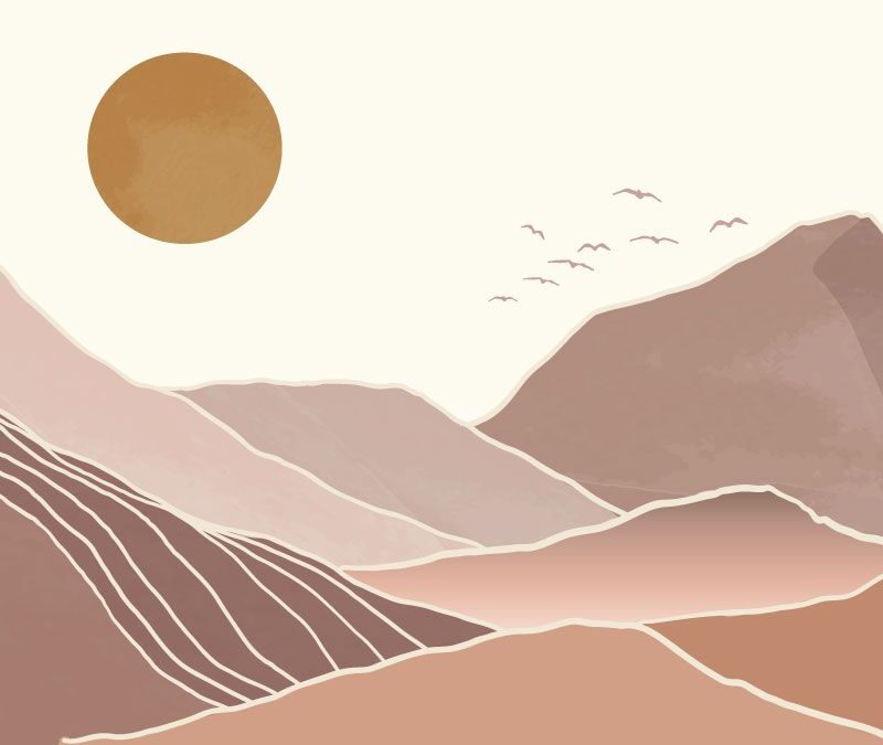 Bring warmth and elegance to your home with this panoramic mountain wallpaper featuring subtle shades of pinkish brown. Against a luminous cream background, the mountain contours emerge in a variety of hues and delicately shaded gradients, creating a refined sense of depth. Their beige outlines subtly highlight each line, giving the decor a style that is both modern and poetic.