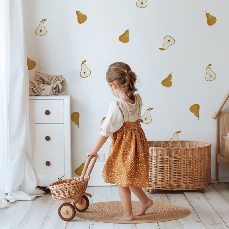 Easily decorate your child’s room with our set of 66 pear stickers. Easy to apply and repositionable, these stickers offer plenty of creative freedom and won’t damage your walls. Let your imagination run wild as you arrange the stickers on the walls or furniture in your child’s room. These versatile stickers are perfect for stimulating the imagination and creating a unique and dynamic play space for your child. Contains: 66 Pears (each pear measures approximately 11 cm in length and 8 cm in width)Shipping