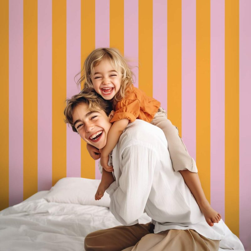 Add a splash of color to your home with the Pomélo wallpaper, a sunny design from our "Vitaminée" collection. Its vertical stripes combine a vibrant orange with a soft pink, creating an irresistibly sweet and lively look. This wallpaper is perfect for energizing a space, bringing a cheerful vibe to any room. The wallpaper is available in two versions: wide stripes (9 cm) or narrow stripes (5 cm). Whether for a teen or child’s bedroom, a living room, or an office, the Pomélo wallpaper brings originality and vitality to your home.