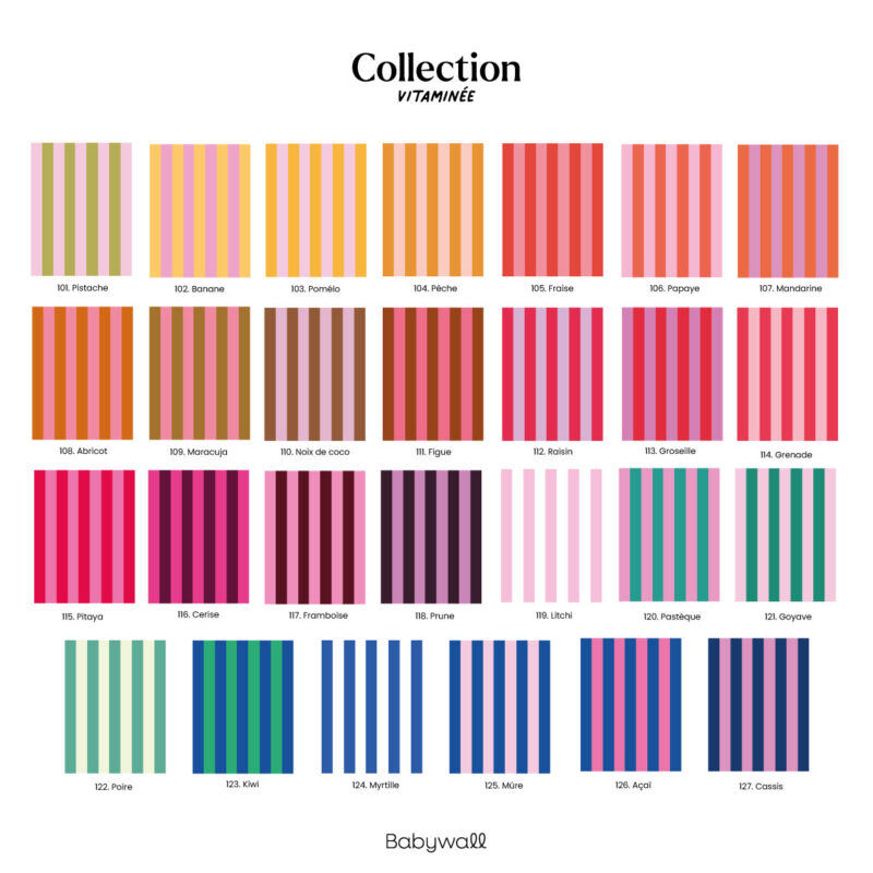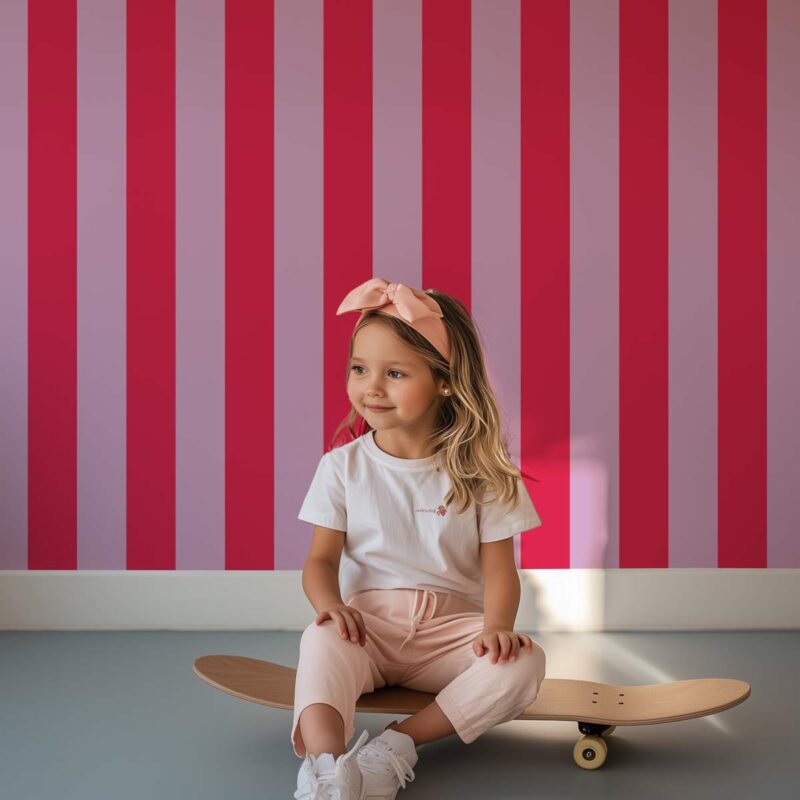 The Raisin wallpaper adds a touch of vibrancy to your home, fitting perfectly into our "Vitaminée" collection. Its vertical stripes create a bold contrast between pastel purple and candy pink, creating a vibrant atmosphere. This wallpaper is designed to enhance any type of decor, offering unparalleled versatility. It is available in two versions: wide stripes (9 cm) for a striking visual impact, or narrow stripes (5 cm) for a more subtle and elegant touch.
