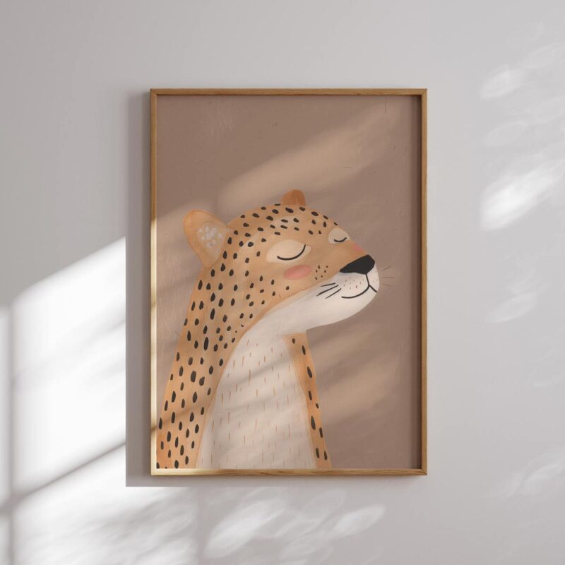 Add a touch of wild elegance to your child’s room with our retro poster of a proud and happy leopard! This watercolor portrait captures the majestic beauty of this iconic animal, while adding a vintage vibe that charms both kids and adults. With its joyful expression and distinctive markings, this leopard becomes an inspiring companion for budding little adventurers. Perfect for decorating a wall, this poster stimulates the imagination and encourages a fascination with nature and animals.Material