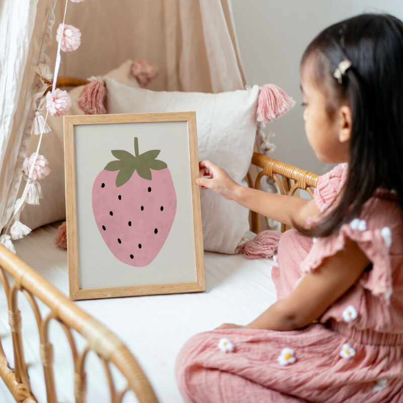Soft and fruity, this pretty powder-pink watercolor strawberry adds a touch of freshness and tenderness to your decor. With its minimalist and poetic style, it will fit perfectly in a child’s bedroom, a playroom, or a cheerful kitchen. A simple yet charming illustration—perfect as a gift for someone else or for yourself!