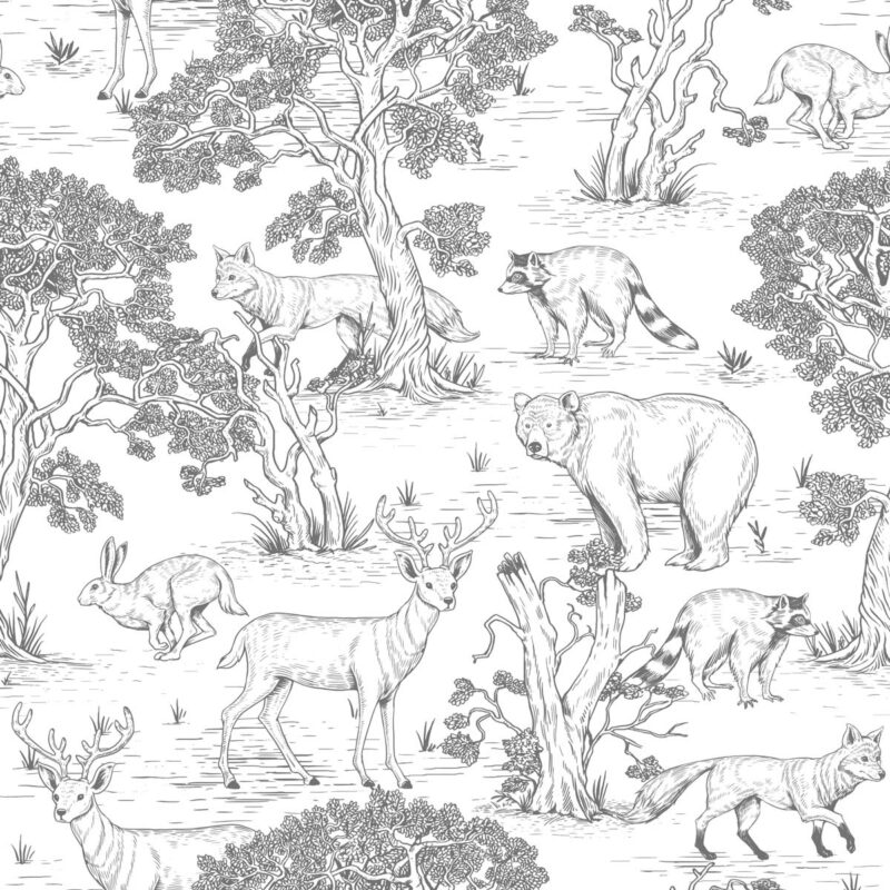Vintage black-and-white forest wallpaper
