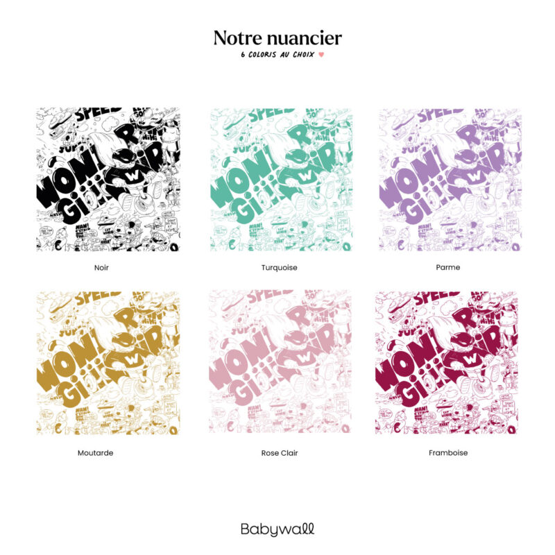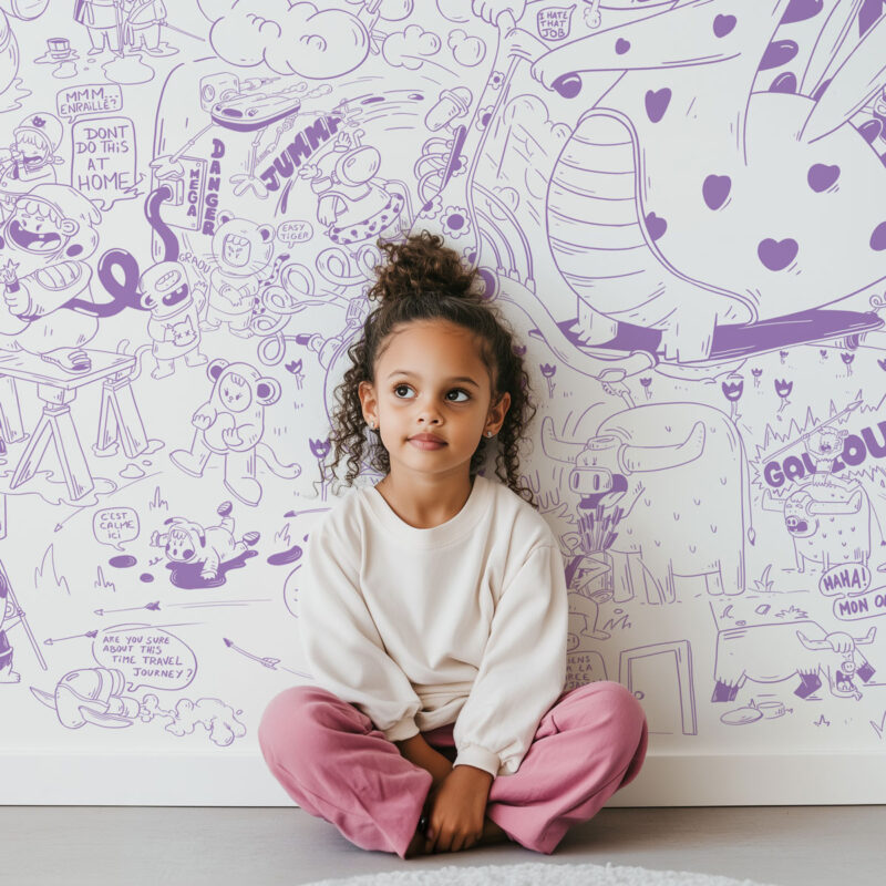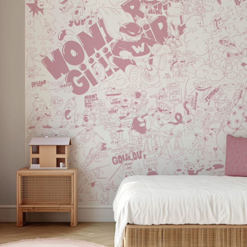 Available in black, mustard, turquoise, light pink, lavender, and raspberry, it adapts to everyone’s tastes and preferences. Whether you opt for bold or softer colors, “Comics Wonder Girl” is the perfect choice to personalize a room with style and character. Give your daughter a unique decor with this teen wallpaper that’s sure to make a splash!