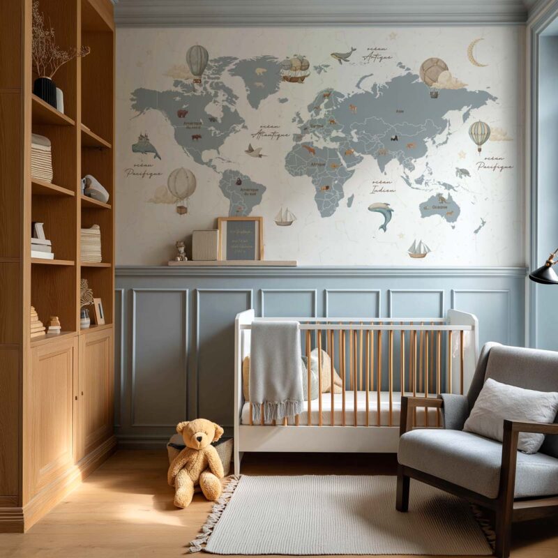 A decor that is elegant, educational, and magical all at once, ideal for creating a soothing and inspiring atmosphere in a child’s bedroom.