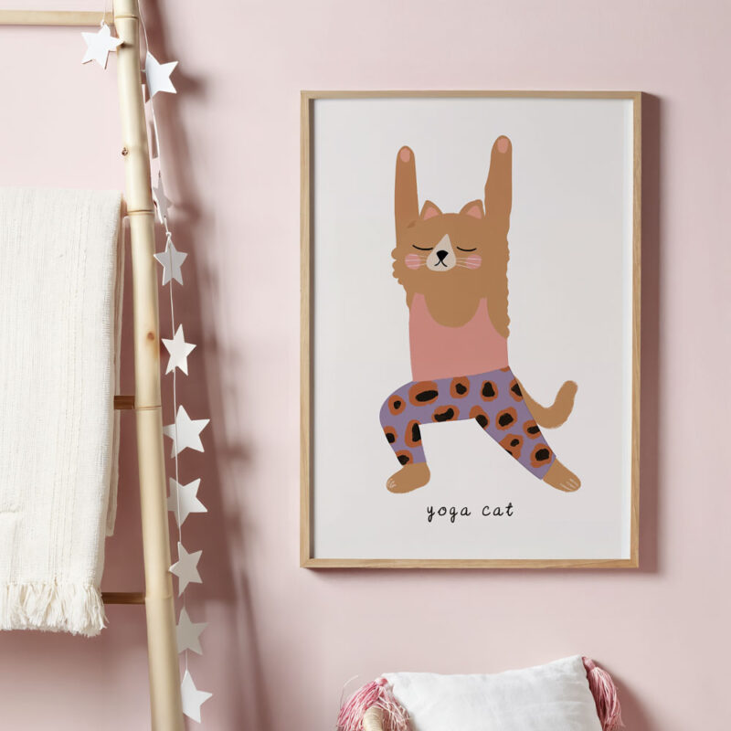 Wearing colorful leggings and focused like a Zen master, Yoga Cat stretches gracefully… or almost! Whether in the cat pose (obviously) or in the middle of a relaxation session, this athletic feline will entertain young and old alike. A humorous illustration, perfect for a child’s bedroom, a playroom, or to bring a smile to a yoga enthusiast’s face. Printed in France on high-quality paper, this poster combines good humor and quality for a decor that’s as sweet as it is quirky.
